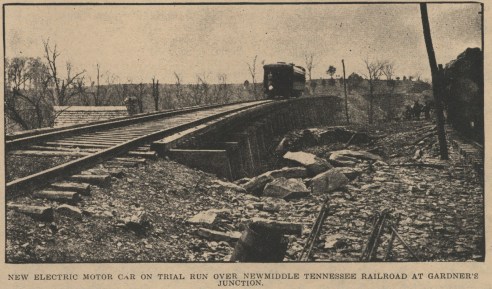 The new electric motor car at Gardner’s Junction in 1911. Photo courtesy of Maury County Archives.